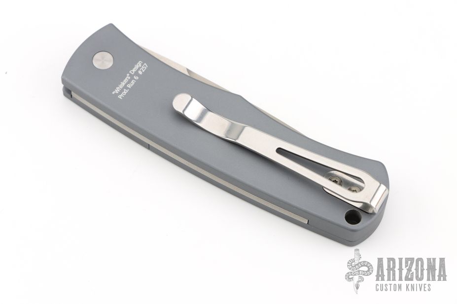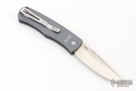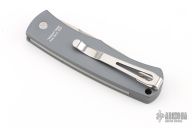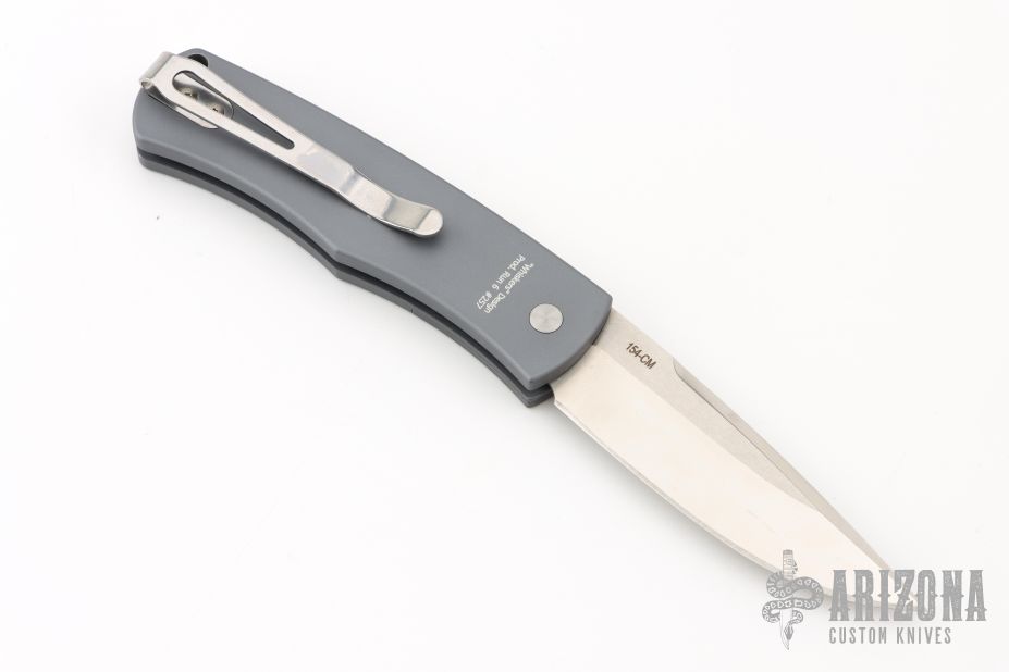 This Magic BR-1 Bolster Release Automatic from Pro-Tech Knives features a stonewashed 154-CM blade with swedge. The handle is comprised of a grey aluminum frame with checkered bolster. Stainless steel clip is positioned for tip up carry. Lanyard hole in the pommel. Prod Run 6 #257. Comes with original box and papers. Has a couple light scuffs, otherwise excellent condition.
