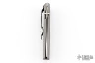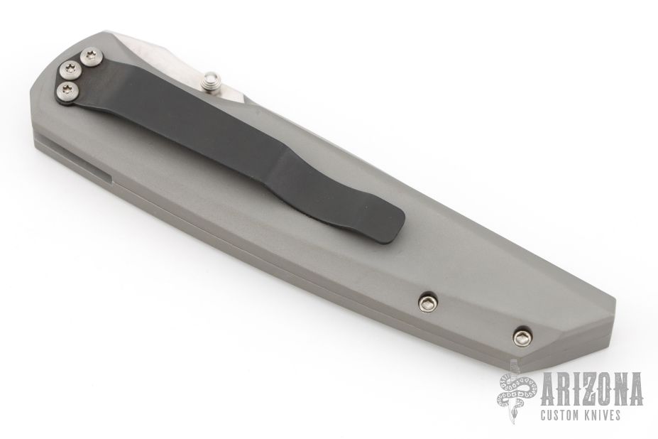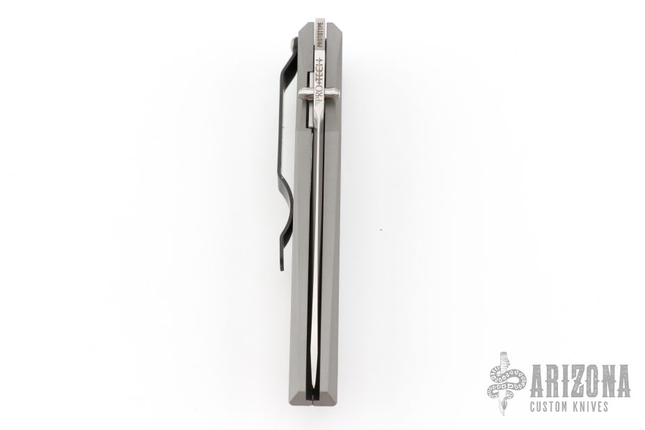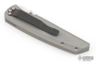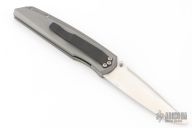 This Harkins Manual linerlock folder by Pro-Tech is the #10 Prototype and has a stainless steel drop point blade with satin finish, swedge and dual thumb studs. Handle is bead blasted aluminum with carbon fiber inserts and black stainless steel tip down clip. Comes with an unlabeled PT box with PT papers. Has some scuffs and scratches, great condition otherwise.