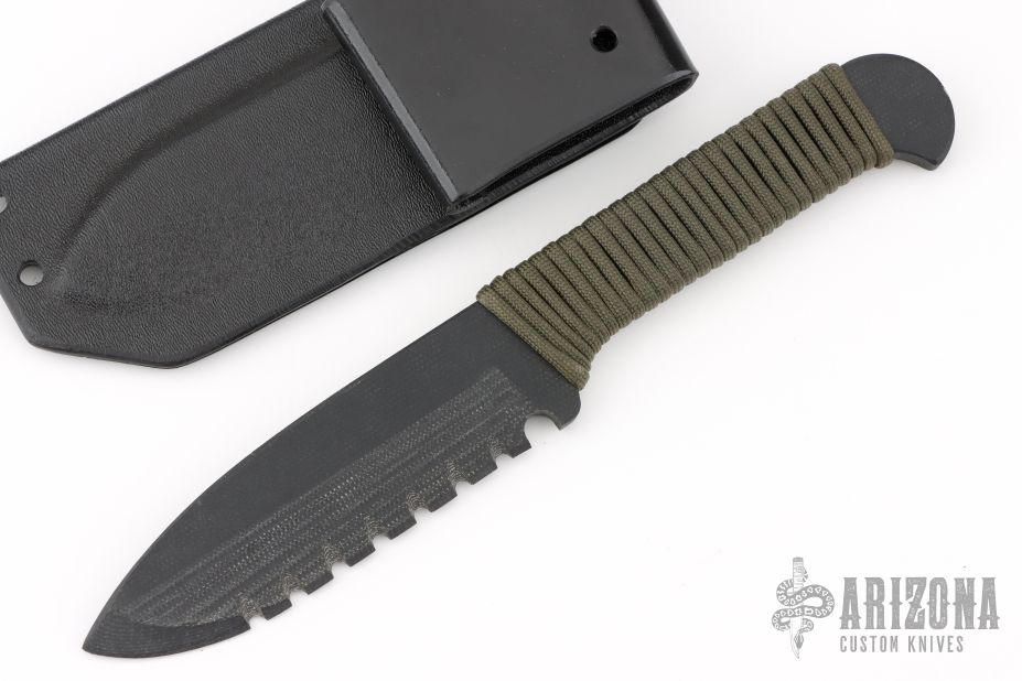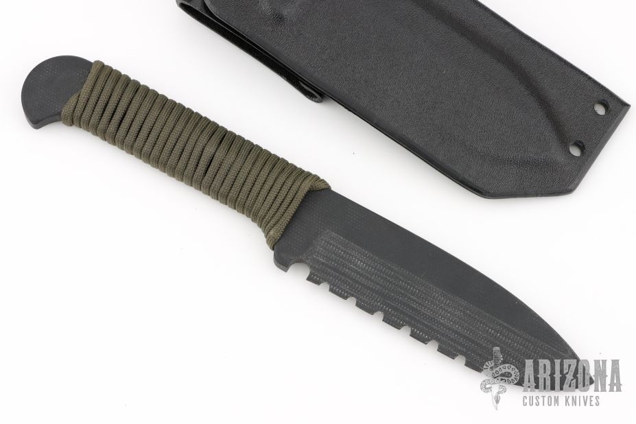 This rare Stealth Hawk fixed blade is made from a solid piece of black MP45 . It has .267" blade stock and 1.375" blade depth. Handle is cord wrapped. Knife comes with a kydex sheath. Excellent Condition.