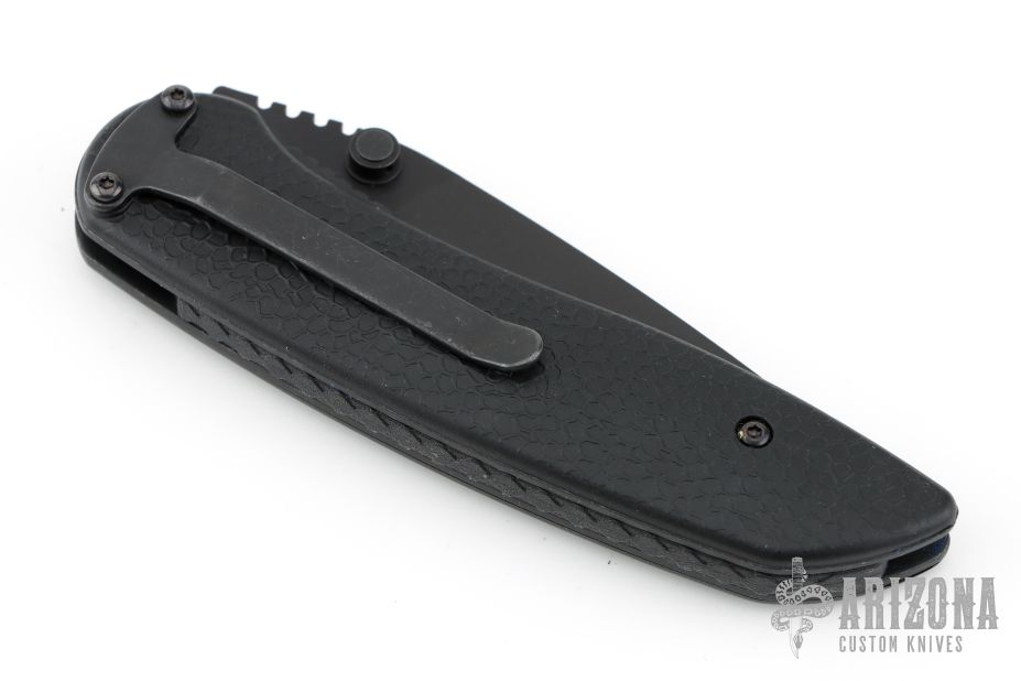The H&K Scorch Code 3 features a unique dual-action design. The knife has a black drop point blade with notched thumbrest and dual thumbstuds. The handle is textured black FRN with black stainless steel liners and tip down clip. Comes with original box and papers. Has some scuffs and scratches, great condition otherwise.