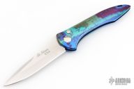 This Auto by TiNives features a high polished spear point blade and multi-color aluminum handle with tip down anodized titanium clip. Excellent condition.