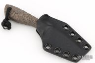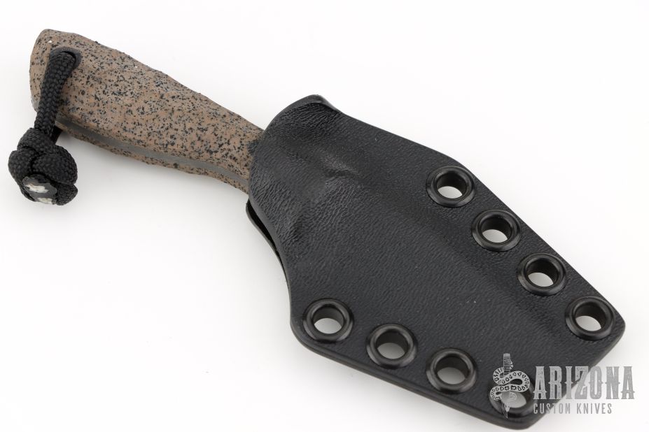 This Runt by Auxiliary Manufacturing features an acid tumbled clip point blade with .107" blade stock and .711" blade depth. The handle has griptec scales. Comes with a kydex sheath with bead chain. New from maker!