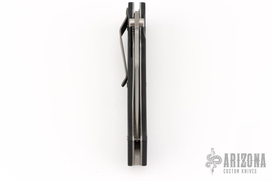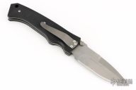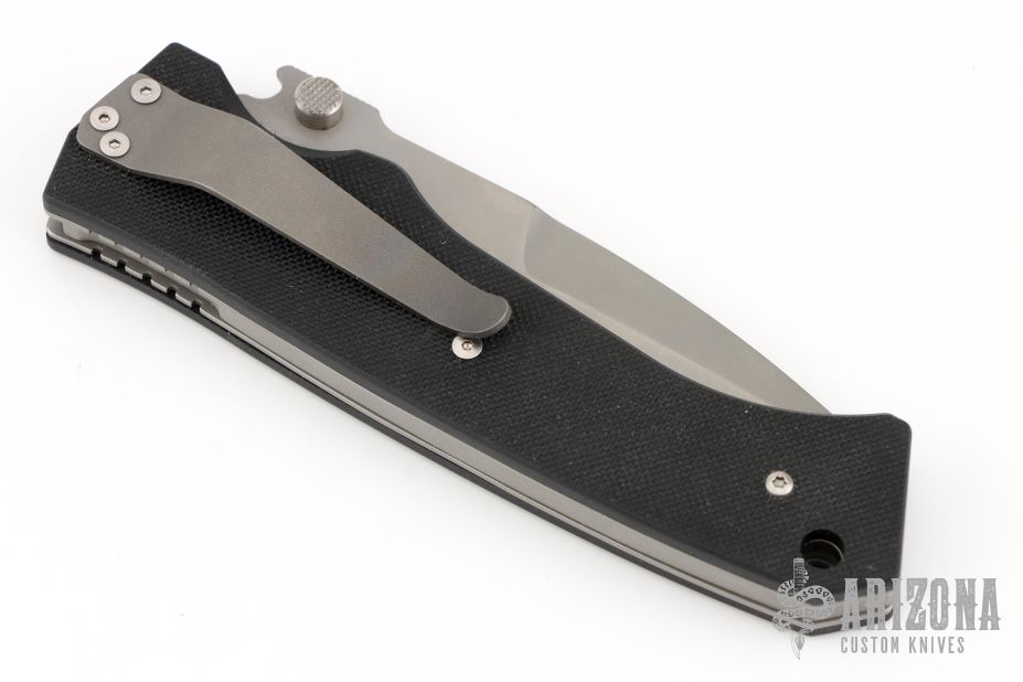 This is a scale release D/A linerlock by Lone Wolf Kninves features a bead blast blade with false top edge, notched thumbrest and dual thumbstuds. The handle has black G-10 scales, stainless steel liners and backspacer with a tip down bead blasted titanium clip. Has some light scuffs and scratches, otherwise great condition. This knife is Pre-Benchmade.