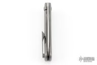 This Lamia by SPK Unlimited features a stonewashed blade with thumbhole. The handle has a milled titanium frame with matching hardware, backspacer and tip up clip with hidden screws. Comes with original box. Excellent condition.