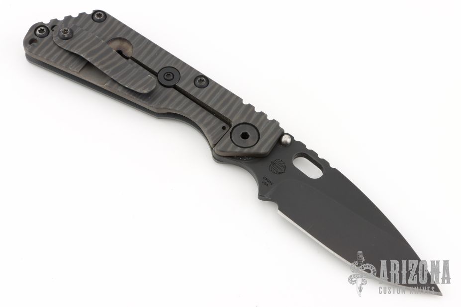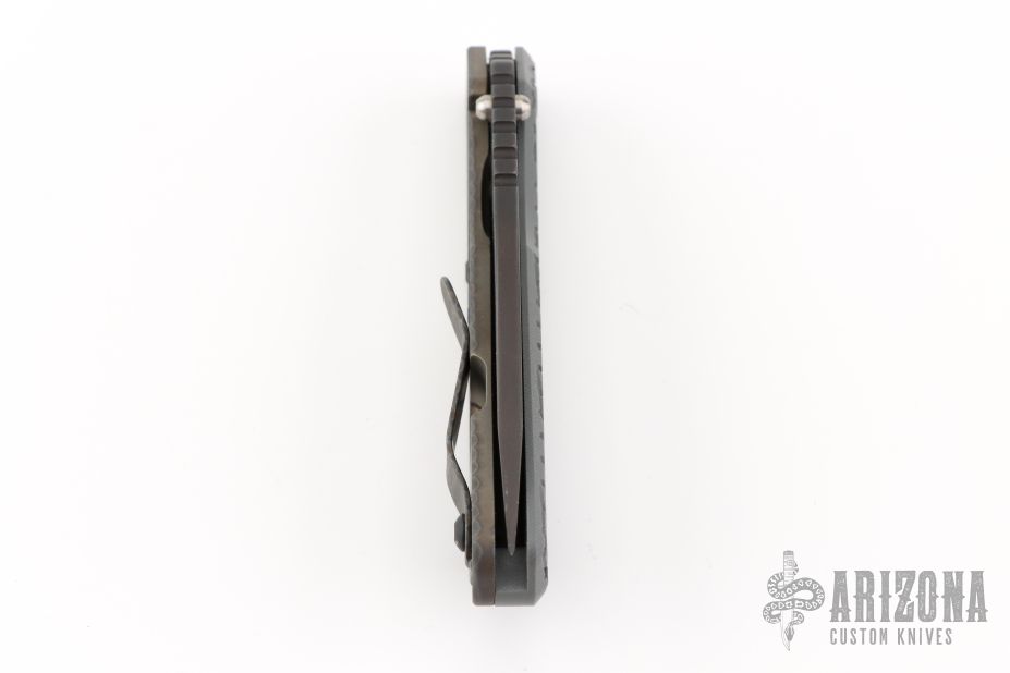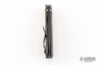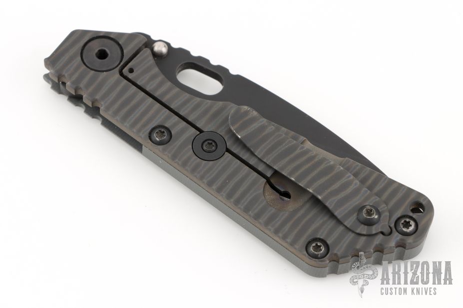 This MS SNG framelock folder by Mick Strider features a black blade and a MEFP aortic gray G-10 and flamed titanium frame and tip up titanium clip. Includes Hinderer "Lock Bar Stabilizer" for maximum reverse lock retention. Nice detent, lockup and blade seating. Has a couple light scratches on the clip, otherwise excellent condition.