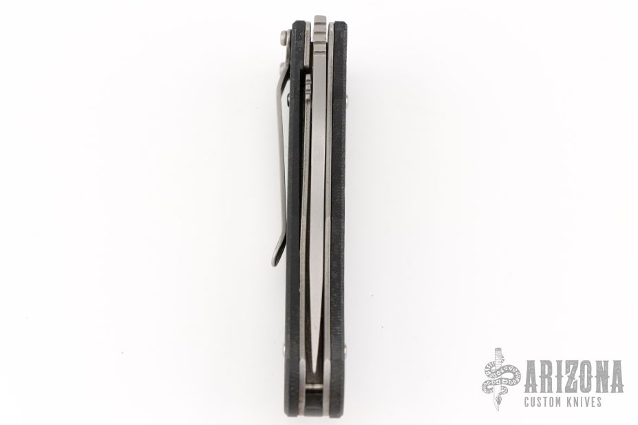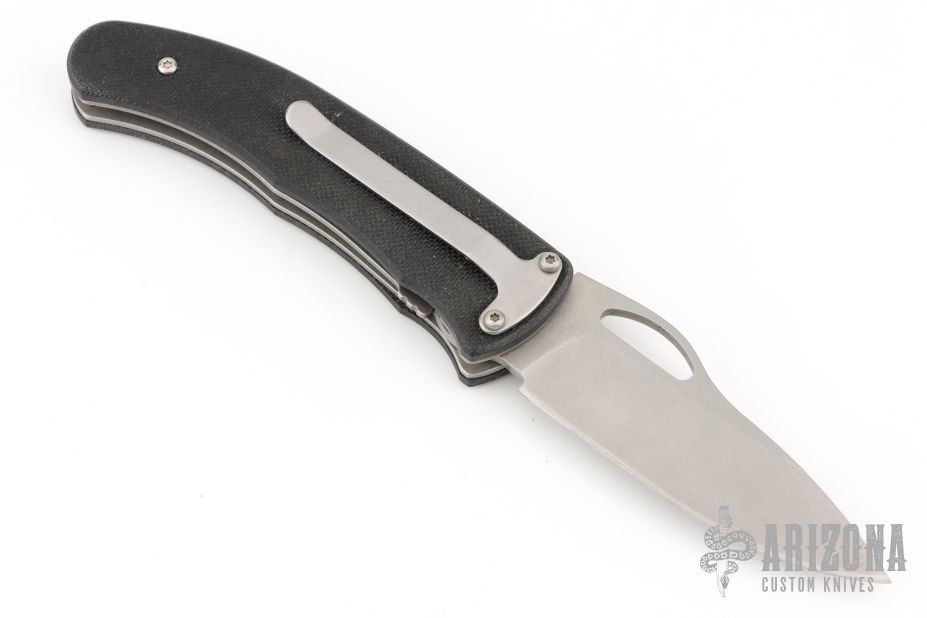 The Double-Duty automatic is a double-action automatic that can function as a one handed opening locking-liner knife or be instantly fired in the automatic mode. The automatic firing mechanism is hidden under the handle and is activated by sliding the front side handle scale towards the back of the knife. Because there are no apparent buttons on the outside of the handle the fact that this is an automatic is known only to its owner. The liners, pocket clip and internal components are stainless steel. The handle is textured black G-10. The knife is lightning fast, good looking and comfortable in the hand. Has some scuffs and scratches, great condition otherwise.