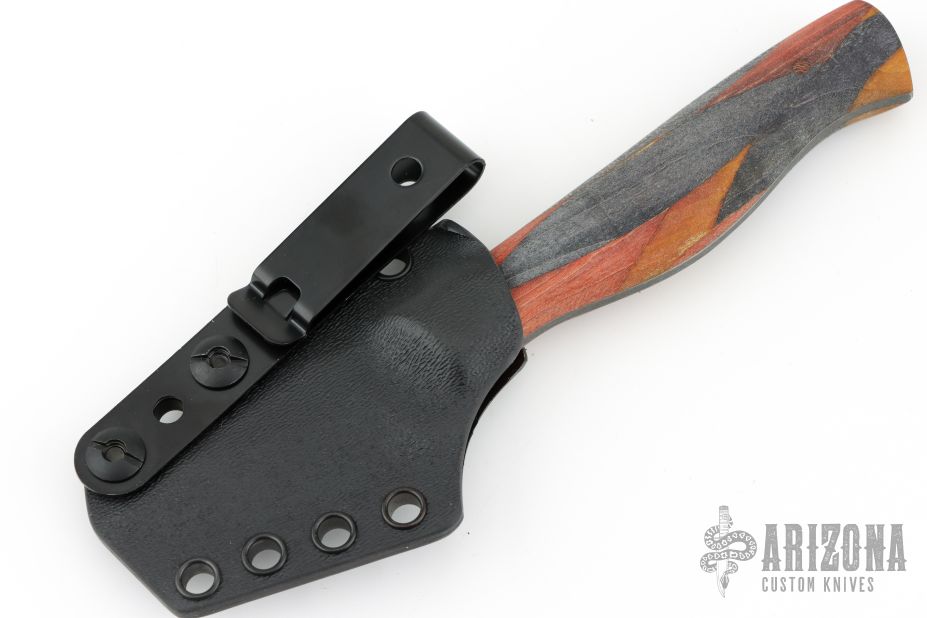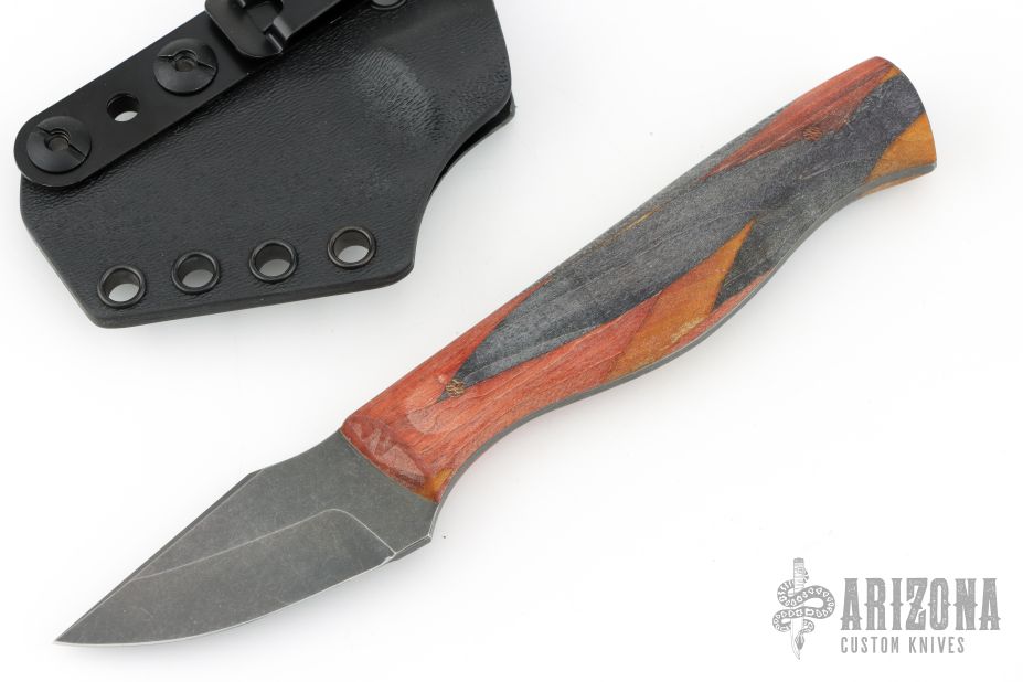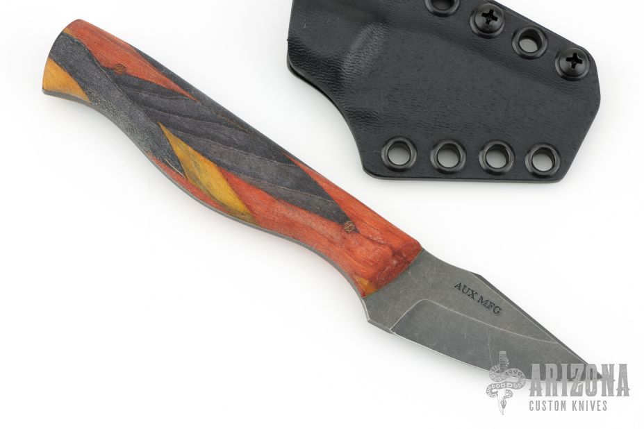 This Model 1 by Auxiliary Manufacturing features an acid tumbled blade with .109" blade stock and .987" blade depth. The handle has wildwood scales. Comes with a kydex sheath with clip. New from maker!
