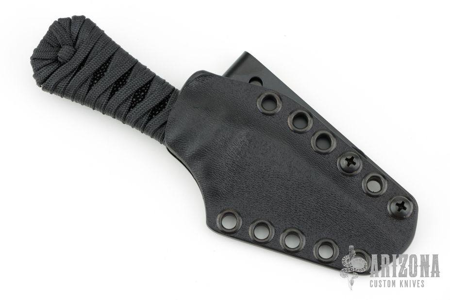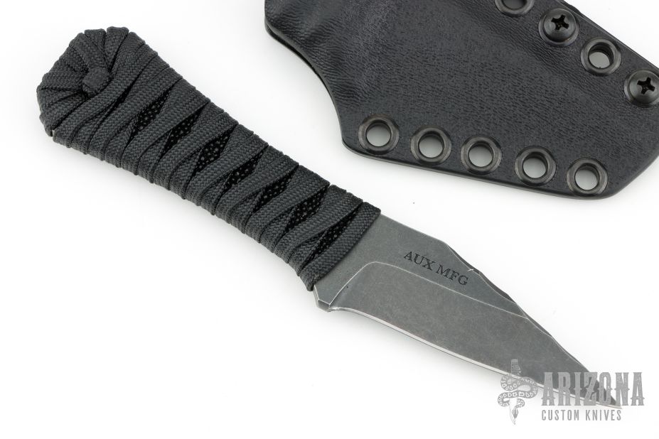 This knife by Auxiliary Manufacturing features an acid tumbled blade with .195" blade stock and .958" blade depth. The handle has a cord wrapped handle over stingray skin. Comes with a kydex sheath with clip. Excellent condition.
