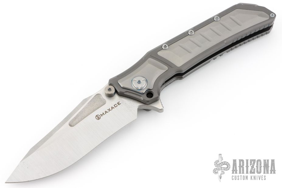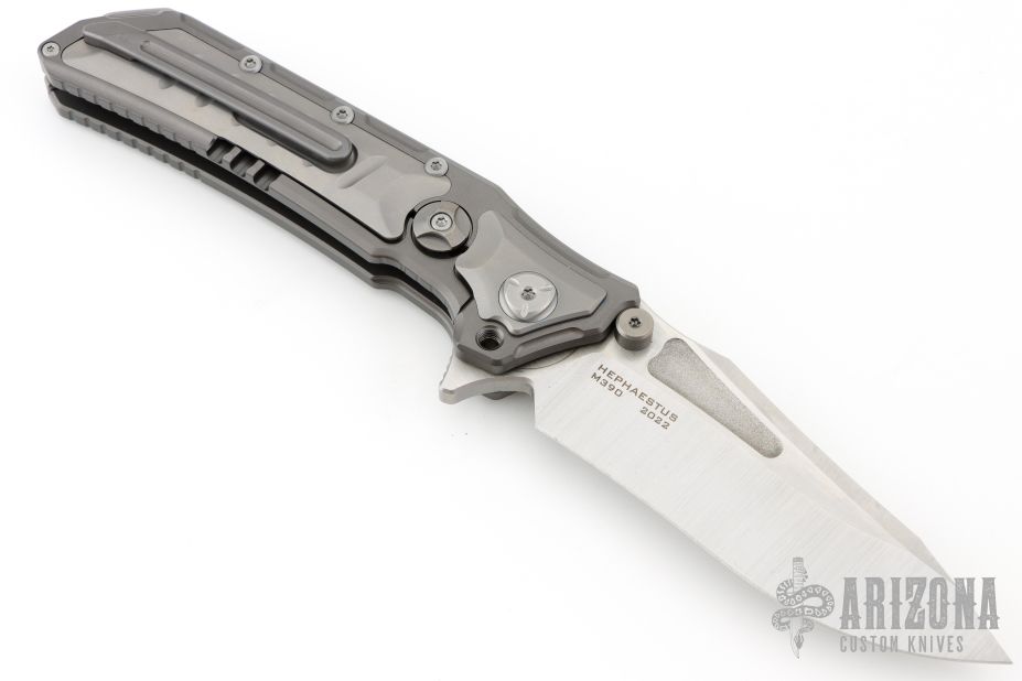 Add the Maxace Knives Hephaestus knife to your collection! In Greek Mythology, Hephaestus is the God of fire and the son of Zeus and Hera. Take your EDC game to God-like heights with by buying this knife. With a titanium handle and a Bohler M390 blade, this is made with high quality materials. The handle is milled and jimped in all the right places, making for an excellent grip. Take it with you to the outdoors and enjoy doing simple tasks with it. If you are looking for your next EDC, this is one you should seriously consider!