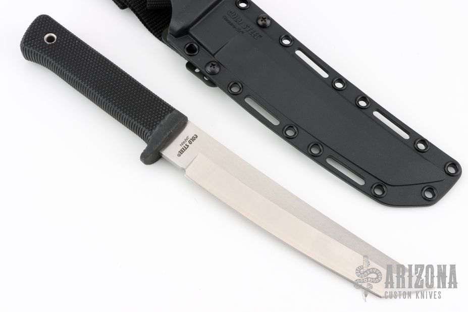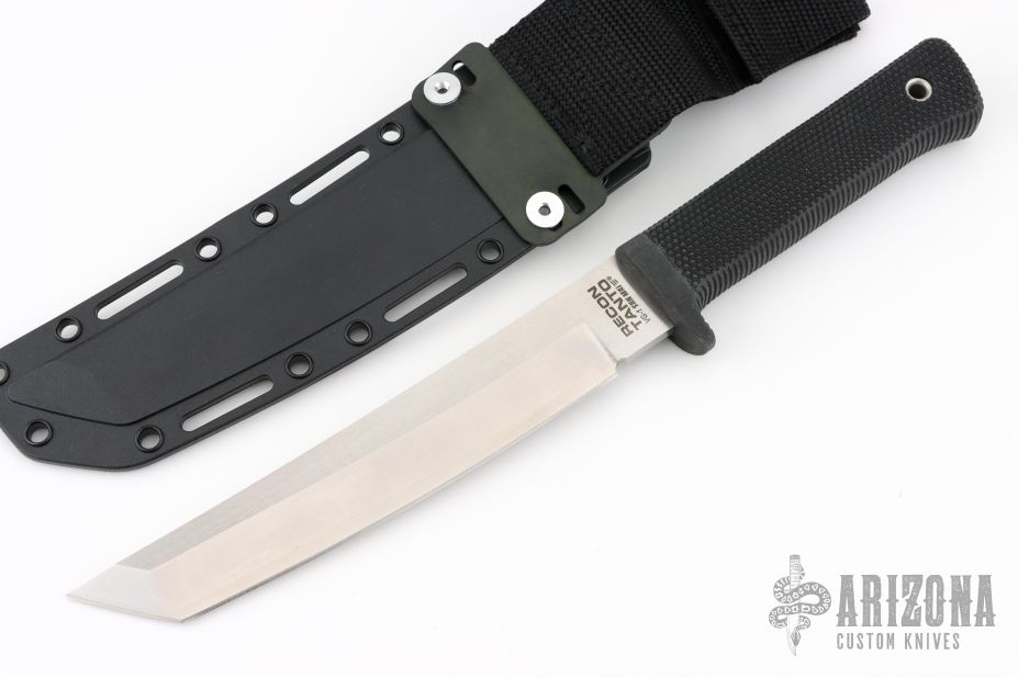 This Recon Tanto from Cold Steel features a satin finished VG-1 San Mai tanto blade, .196" blade stock and 1.184" blade depth, hidden tang construction. The handle is comprised of textured kraton over hidden tang construction. Comes with black molded sheath with belt loop and original box. Excellent condition.