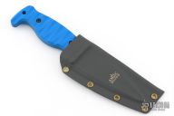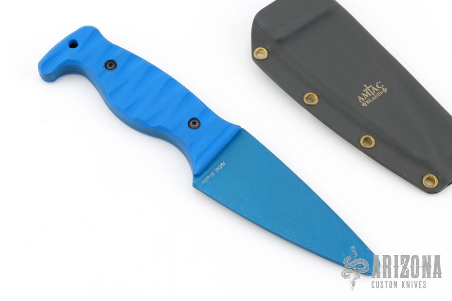 The Amtac Blades Minuteman features a 4-inch flat ground blade with a swedge starting 1.5 inches from the handle. This blade geometry allows for great thrusting ability and strength. The 1.5 inches of spine directly forward of the handle has a semi sharp 90° angle to facilitate better striking of a ferro rod and other backcountry tasks. The handle of the Minuteman is 3 3/4 inches long. The blade is designed primarily for belt carry.