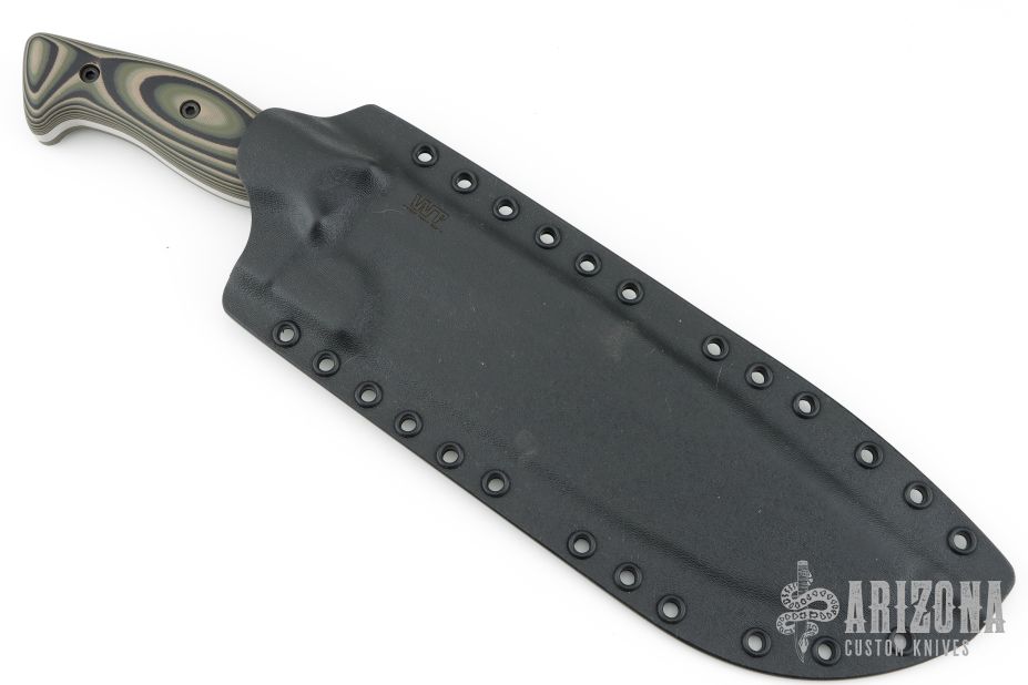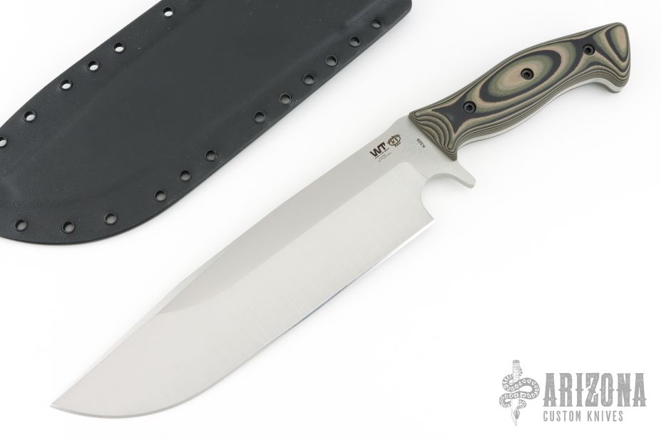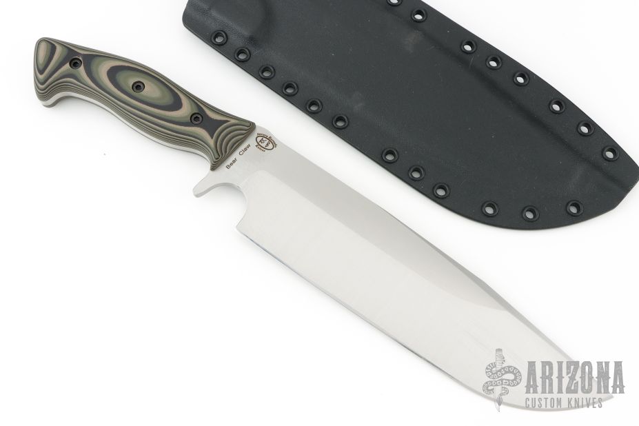 This Bear Claw by Work Tuff Gear features a satin finished K329 Steel blade with false top edge, .232" blade stock and 2.325" blade depth, full tang construction with jungle camo G-10 scales. Comes with original box, kydex sheath and extras. First Production Run Dated 05-2024. Excellent condition.