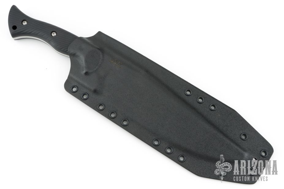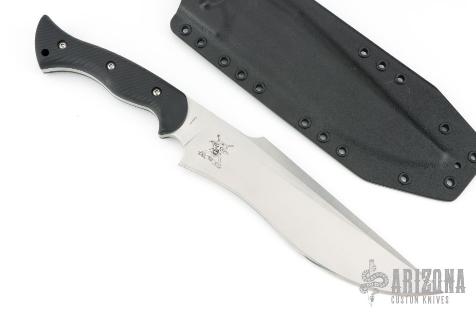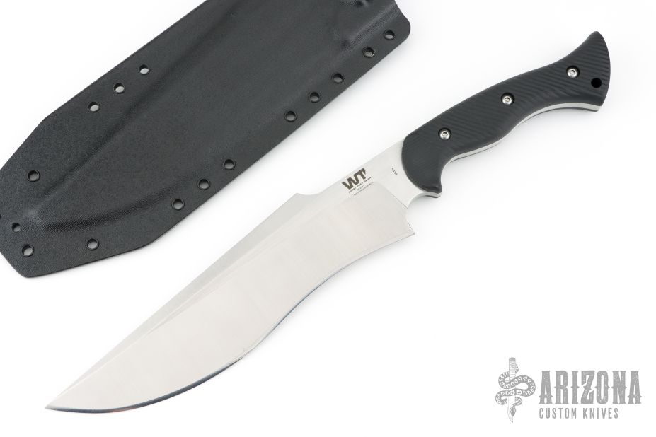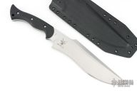 This Famine Fighter by Work Tuff Gear features a satin finished SK85 blade with a convex cutting edge, long swedge, .226" blade stock and 2.050" blade depth, full tang construction with black G-10 scales with black liners. Comes with a kydex sheath, original box and extras. Excellent condition.