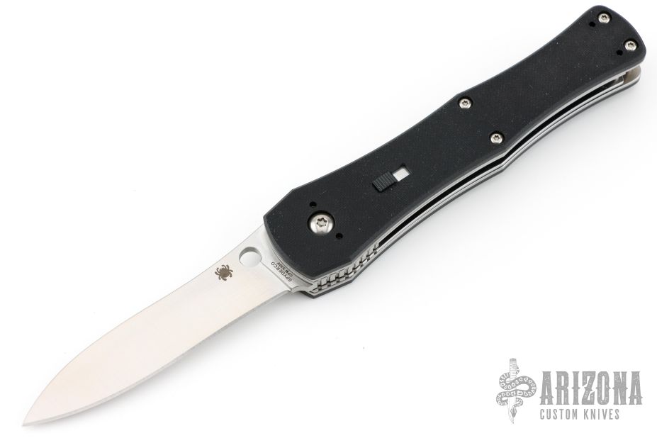 This JaniSong by Spyderco Knives is a Michael Janich design and is rare in the USA since Spyderco chose to only sell this knife outside the USA. Features a satin finished blade. The handle has black G-10 scales with locking switch, stainless steel liner and barrel spacers. Has a black stainless steel 4-Way Reversible clip. Includes original box and papers. Excellent condition.