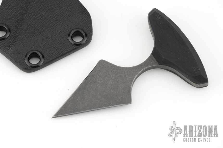 This BroadHead by Auxiliary Manufacturing features an acid tumbled double edged chisel ground blade with .136" blade stock and 1.137" blade depth. The handle has black G10 scales. Comes with a kydex neck sheath. New from maker!
