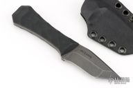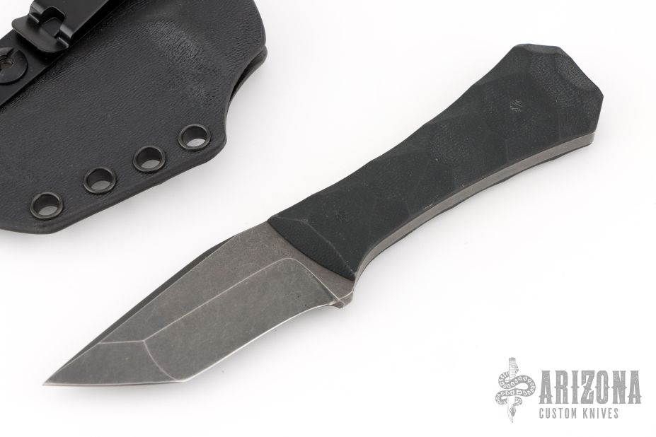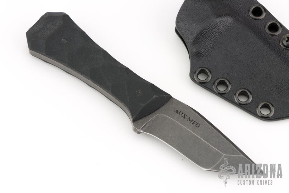 This Coffin Tanto by Auxiliary Manufacturing features an acid tumbled blade, .198" blade stock and 1.017" blade depth. The handle has black G-10 scales. Comes with a kydex sheath with clip. New from maker!