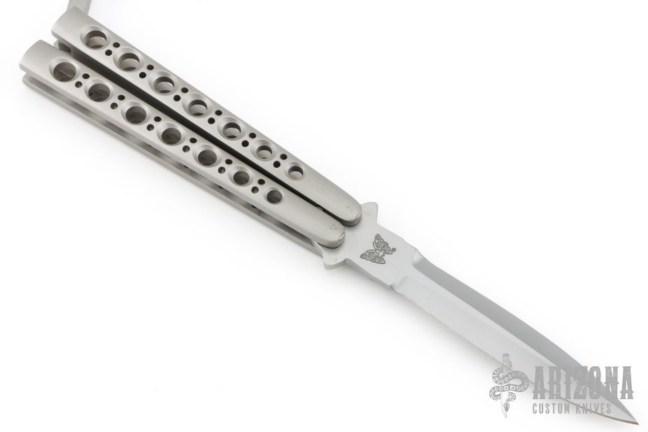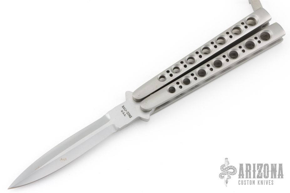 Balisong USA started manufacturing butterfly knives in the late 1970s, then changed its name to Pacific Cutlery in the early 1980s, before finally becoming Benchmade. The earlier knives featured a wide variety of custom blade designs (many of which were hand ground by master knifemaker Jody Samson, well known for making the swords in the movie Conan the Barbarian), as well as a number of exotic inlays for the handles (ivory, prehistoric ivory, scrimshawed ivory, mother-of-pearl, ebony, tropical woods, etc.)
