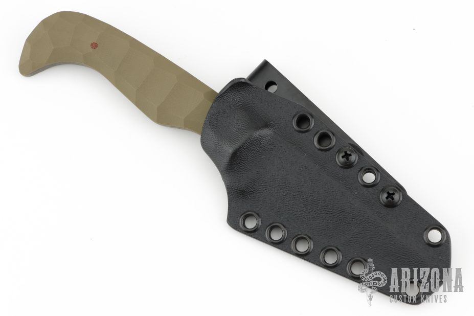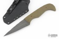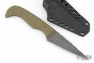 This Karl by Auxiliary Manufacturing features an acid tumbled blade with textured spine, .137" blade stock and 1.085" blade depth. The handle has OD Green G-10 scales with micarta pins. Comes with a kydex sheath with clip. New from maker!