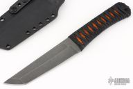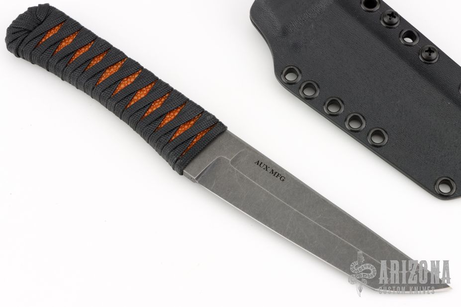 This Tanto by Auxiliary Manufacturing features an acid tumbled blade with .177" blade stock and 1.179" blade depth. The handle has a cord-wrapped handle over stingray skin. Comes with a kydex sheath with clip. New from Maker!