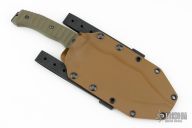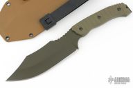 This Full Size Bush Bitch by Trouble Blades features a green cerakoted blade with notched thumbrest, .237" blade stock and 1.890" blade depth, full tang construction. The handle has green G-10 scales with lime green liners. Excellent condition. Comes with a kydex sheath and COA dated March 20, 2020.