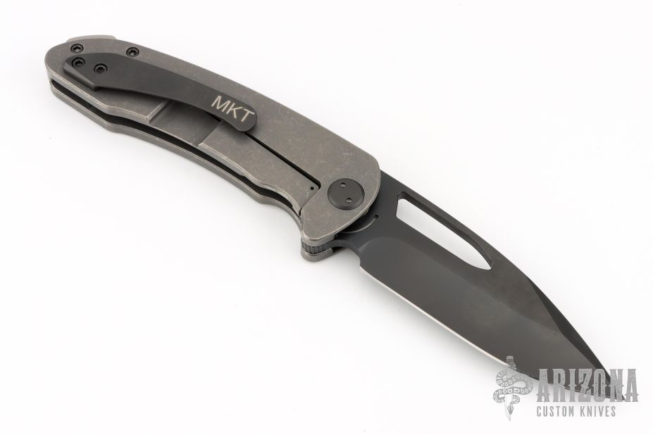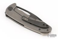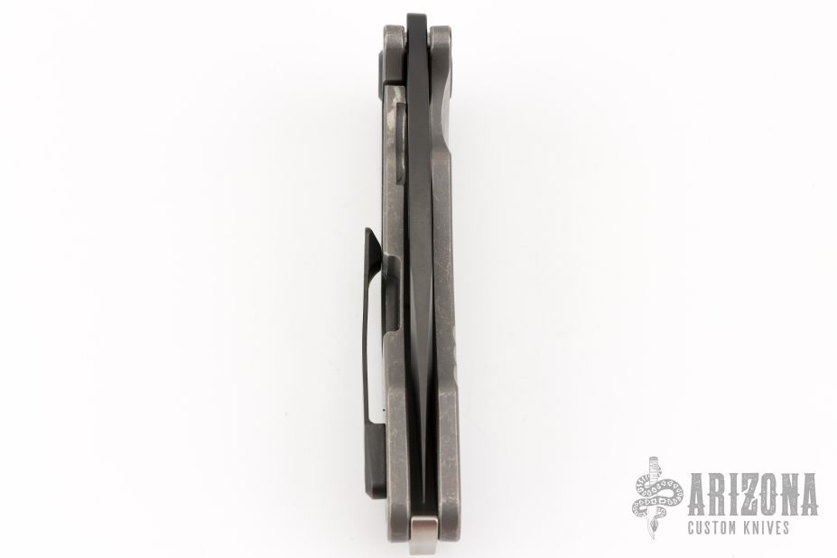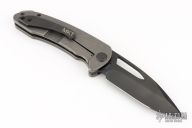 This On Belay by Medford Knives features a stonewashed black PVD spear point blade with thumbhole and notched flipper. The handle has a stonewashed titanium frame with stainless steel backspacer with lanyard hole, tip up black PVD titanium clip. Includes original box, hard pelican case and COA dated August 11, 2017.  Excellent Condition.