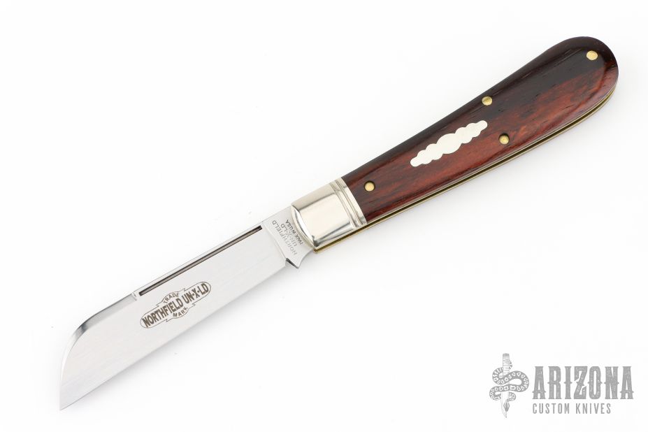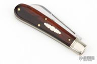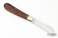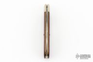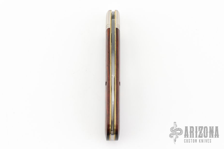 This Swayback by Great Eastern Cutlery features mirror finished wharncliffe blade with nail nick. The handle has fluted nickel silver bolsters, cocobolo covers with a nickel silver, brass pins and liners, stainless steel spring. Has half-stop. Comes with original tube. Excellent condition.