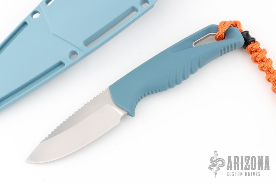 - Handle: Depth blue Santoprene handle molded over a full tang.