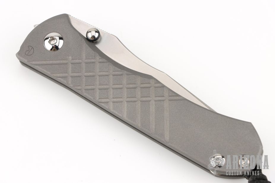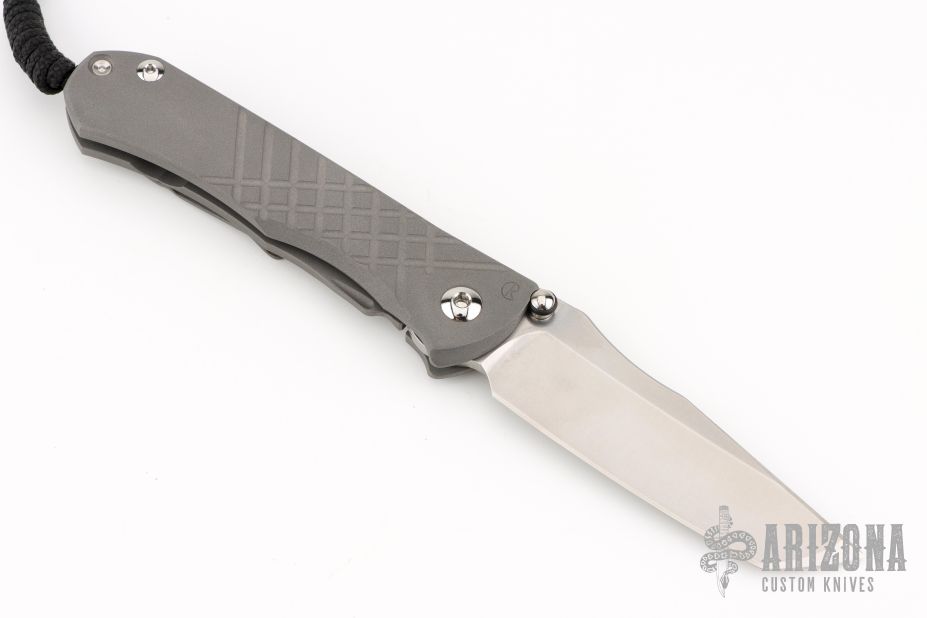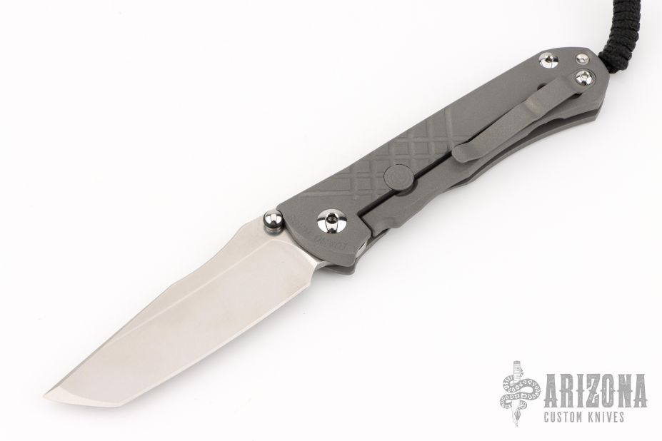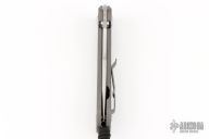 This Left Handed Unumzaan from Chris Reeve Knives features a stonewash finish blade with dual thumb studs and notched thumbrest. The handle has a glass blasted and milled titanium with matching tip up clip. Lanyard pin with lanyard and spacer bead in pommel. Comes with original box, papers and COA dated March 26, 2025. New condition.