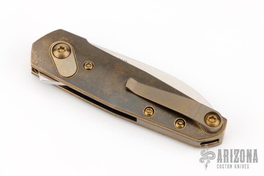 Its unique design features a precision-engineered blade and one-piece integral chassis construction for each side, incorporating the pivot screw, button lock, clip, and lanyard attachment point. The full assembly is securely held together with titanium screws on the back of the handle.