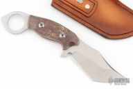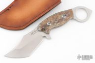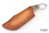 This EDKK by Jeff Isgro features a stonewashed blade with notched thumbrest, .159" blade stock and 1.55" blade depth, full tang construction. The handle has titanium scales. Comes with a brown leather sheath. Excellent condition.