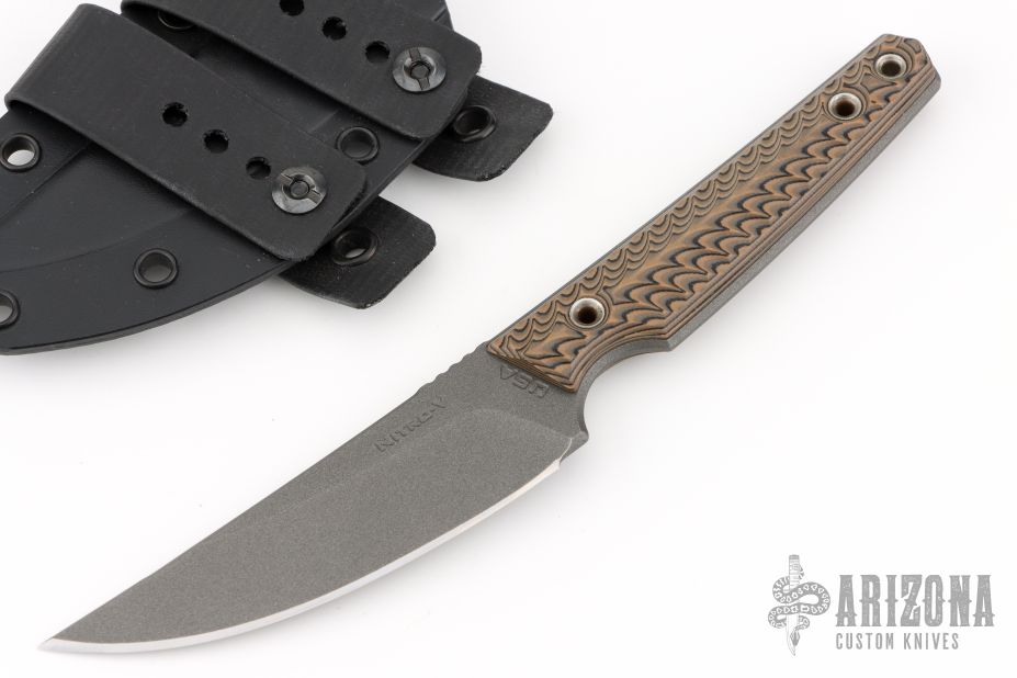 The light and thin design makes this a great knife for any slicing needs. The blade has a Tungsten Cerakote finish for corrosion and glare resistance, and added durability. The beveled and contoured G10 grips feature diagonal texturing for an aggressive but comfortable and secure grip. The Unmei comes with a molded kydex scabbard including two MAD straps that allow for scout carry (horizontal) and inside the waistband (IWB) vertical carry. The Unmei is MOLLE compatible and can also be attached to any pack, plate carrier or similar gear with PALS webbing.  The scabbard will work with most of the popular clips and mounts like the Discreet Carry Concepts Clip and UltiClip.