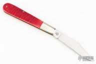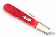 This Barlow by Case features a mirror polished blade with nail nick. The handle has nickel silver bolsters, red jigged bone covers, brass liners and stainless steel spring. Excellent condition. Comes with a Case box.