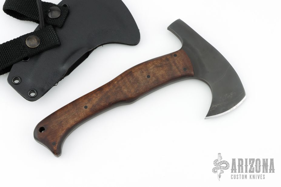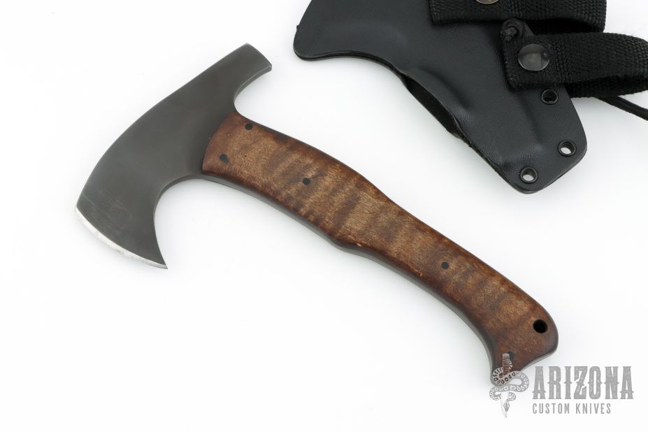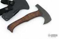 A small hand axe designed with hunters in mind, the WK Hunter Axe is effective for clearing a sight window, game prep and normal camping chores. The LT (light weight) version is made of ¼" steel instead of ⅜" like its retired predecessor, making it easy to pack while still providing good chopping power. Comes with kydex sheath. Has some light scuffs, otherwise excellent condition.