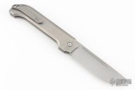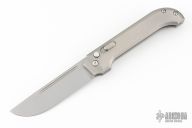 The Katana is a stout and stylish EDC automatic knife from D Rocket Designs. This model has a bead blast finished titanium handle and a bead blast finished blade. The clean modern design is accentuated by satin polished hardware, safety, and push button. Comes with a box with clasps. Has scuffs and scratches, fair condition otherwise.