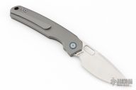 The oval-shaped Titanium button is easy to access and fits the overall knife style seamlessly. Equipped with a ceramic ball-bearing system, the Psyop can be smoothly deployed with both a front flipper and thumbhole.