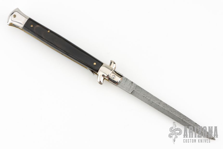 11" Swivel Bolster Auto - Damascus and Buffalo Horn