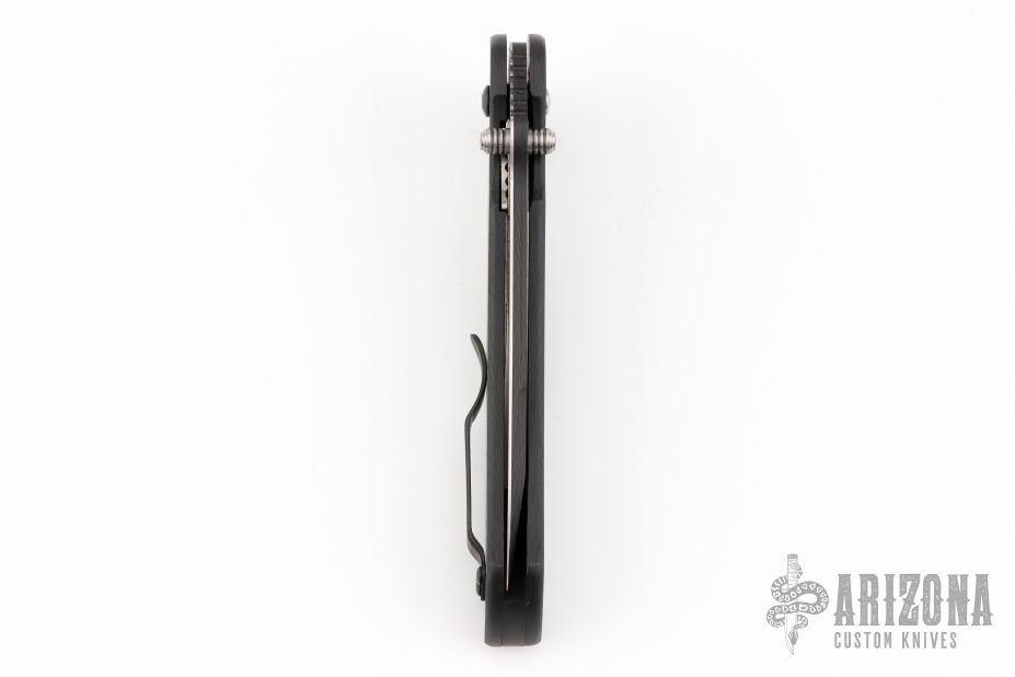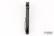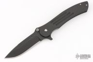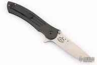 This Spear Point Flipper by John Kubasek features a carbon fiber/D2 Laminate blade with notched thumb ramp, dual thumbstuds and a flipper. The handle has a carbon fiber frame with a single titanium liner and a tip up or down reversible carbon fiber clip. Nice detent, lockup and blade seating. Comes with a nylon zippered case. Has a couple light scuffs, excellent condition otherwise.
