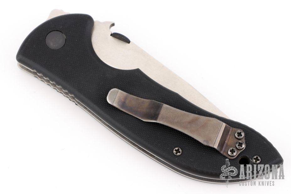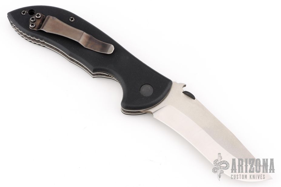This 5 Year Anniversary Commander linerlock folder has a hand ground satin finished blade and black G-10 scales, titanium liners, tip up black stainless steel clip. Wave feature. Comes with original box and papers. Excellent condition.