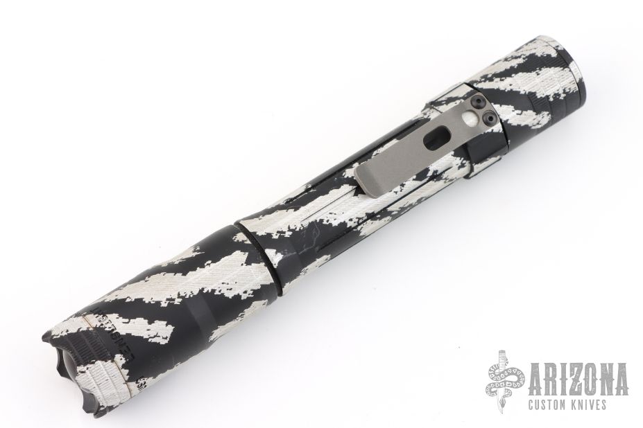 Material: 7075 Aluminum Output (Lumens): 850 (high) / 400 (medium) / 5 (low) Runtime (hours): 2.5 (high) / 5 (medium) / 100+ (low) Battery Type: 3xCR123 or RCR123 1) High Impact Hardened Optical Glass Lenses – protects the LED from the toughest of conditions and diligently bends the light much like a magnifying glass to ensure maximum brightness, distance, and efficiency. But don’t let the durability of a glass lens fool you, these lenses have been vigorously tested and designed to withstand excessive abuse while retaining optimal performance. 2) Patented Focusing Aspherical Lens System – This patented technology allows for a significant array of focusing options ranging from a flood to spot beam. This ensures that the perfect focus setting is available whether you are concentrating the light hundreds of yards away, or lighting up an object nearby. 3) 7075 Aluminum Aerospace Grade Alloy Construction– Defends against the harshest conditions imaginable and is shielded by a type III hard-anodized finish, a military grade surface coating available to resists corrosion and improve durability. (Available in either Tan or Black finish). 4) McClicky Momentary Activation On/Off Switch – This reliable easy to use tailcap switch enables the LensLight 3x123’s 2 or 3-stage microprocessor to power the flashlight at either an efficient low setting or high output level for maximum brightness. Simply press down once for low setting, press again for high setting, or simply press all the way down for constant-on. 5) Light Emitting Diode –A premium exclusive high-tech, high-efficiency LED is used to emit astonishing power that is untouchable by any other light. This everlasting LED is sure to exert enough luminosity to stop any and everything in its track. Now that’s what you call an LED! 6) Premium Grade O-Rings- LensLight 3x123 contains 6 strategically placed O-rings throughout the flashlight to seal and protect the lights internals from dust, moisture, and any other micro-substance that it may come in contact with. This ensures that the LensLight performs at maximum efficiency at all times and your investment last a lifetime. 7) 3X CR123 Batteries – powered using three CR123 or RCR123 batteries. 8) Titanium Pocket Clip (3) CR123 or RCR123 Batteries Patented Focusable Aspheric Lens System TypeIII hard anodize 7075 Aluminum High Tolerance American CNC Machining Double Lens - high impact hardened glass Chem-Kote Contacts and Heat sink Aerospace Grade Thermal Potting and Flow Management Temperature regulation Weather Proof/Water Resistant Premium Bin High CRI CREE XML-2 LED Fully Regulated Light Engine Excellent condition.