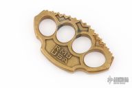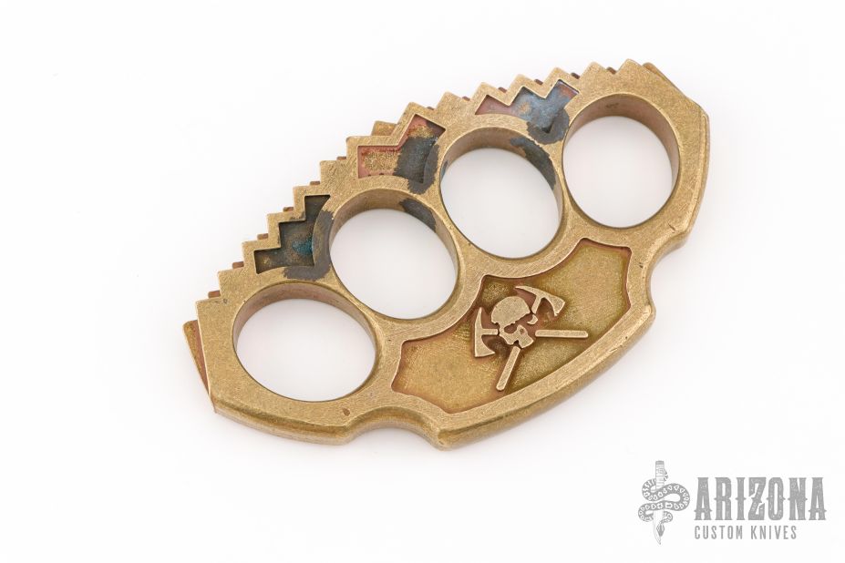 Uncle Stumpy is a man who is not afraid to get his hands dirty. Due to this lifestyle, he was in need of a manly exfoliator as every modern gent is. Hence, the Snuckles exfoliator and meat tenderizer. Use with care, or don't. Uncle Stumpy isn't responsible for stupidity. Comes with original bag. Made from brass. Has some patina, otherwise excellent condition.