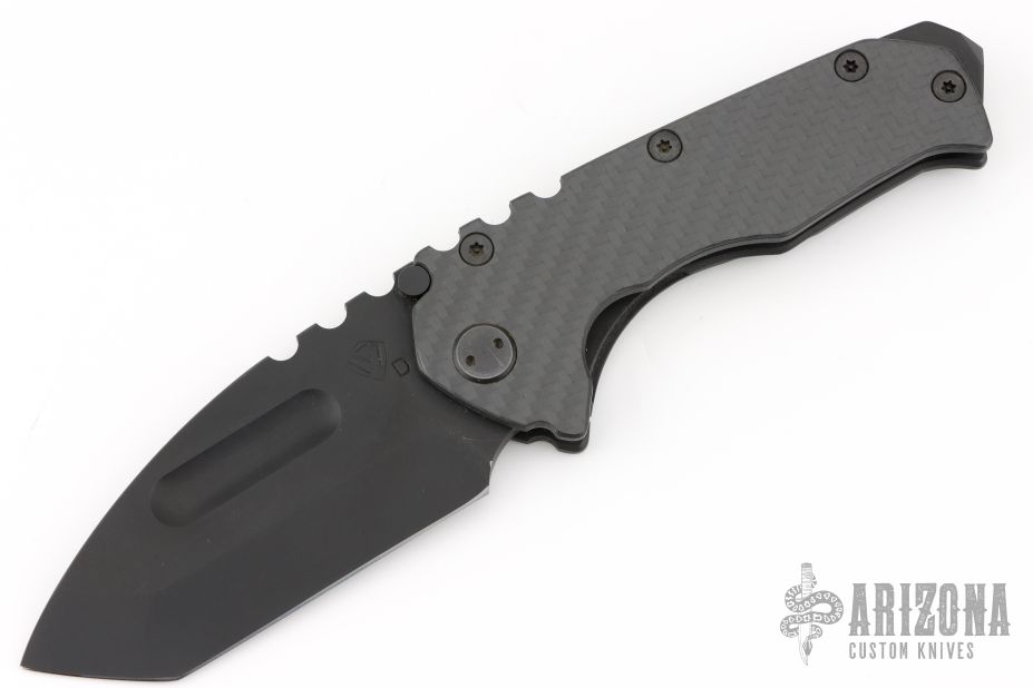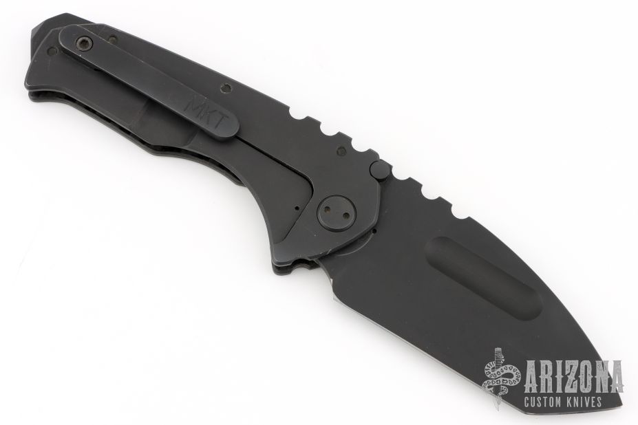 The Stealth Praetorian is a blacked out version of the popular Praetorian model from Medford Knives. It is a TON of blade in a relatively small package. This design incorporates aerospace materials, space age coatings, old school metallurgy, thoughtful design and hand craftsmanship that is rare but alive and strong in this modern world. This particular knife features a DLC coated frame, blade, and hardware. Very nice lockup, extremely smooth action, and perfect detent. Dead center blade seating. Comes with hard case, papers, and maker's card. Has a couple light scuffs and scratches, great condition otherwise.