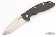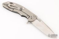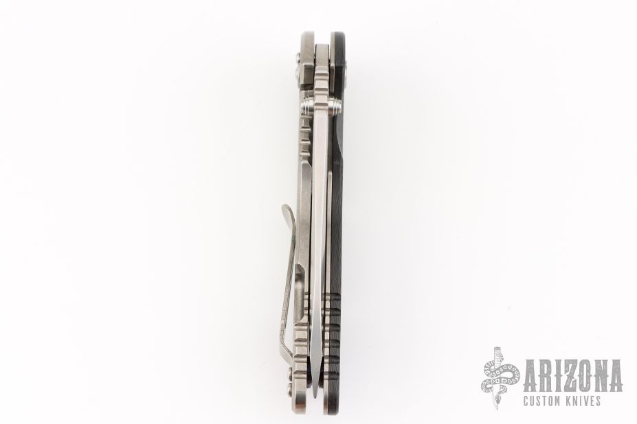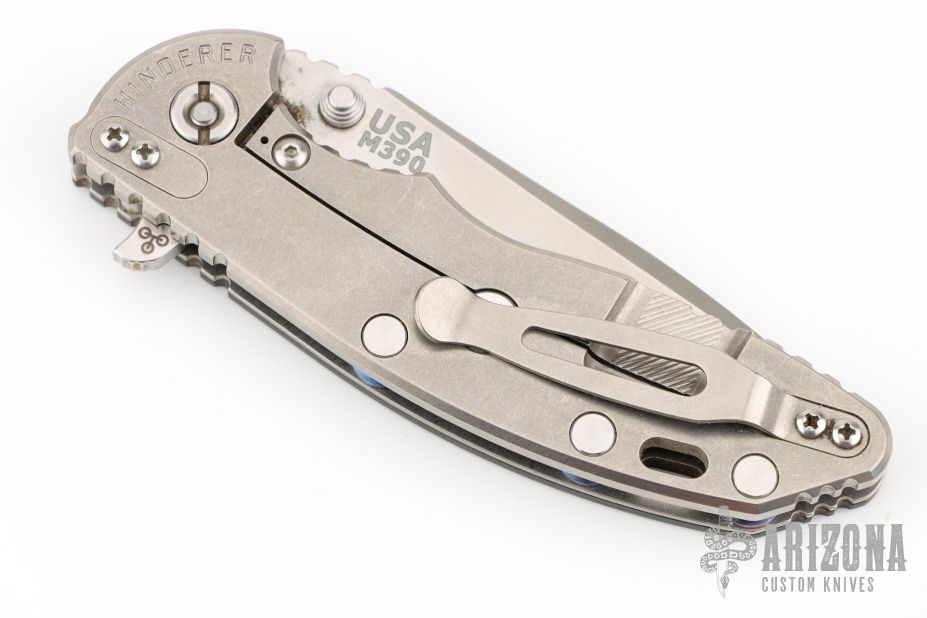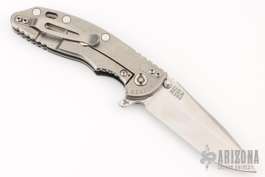 This XM-18 Flipper by Rick Hinderer Knives features a 3.5" stonewash finished blade, notched thumbrest and flipper, dual thumbstuds. The handle has a aftermarket carbon fiber G-10 scale, stonewashed titanium frame, clip can be mounted for tip up or down carry. Nice lockup, seating, and detent. Doesn't come with anything. Has a couple light scuffs and scratches, excellent condition otherwise.