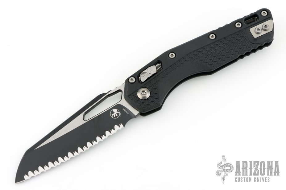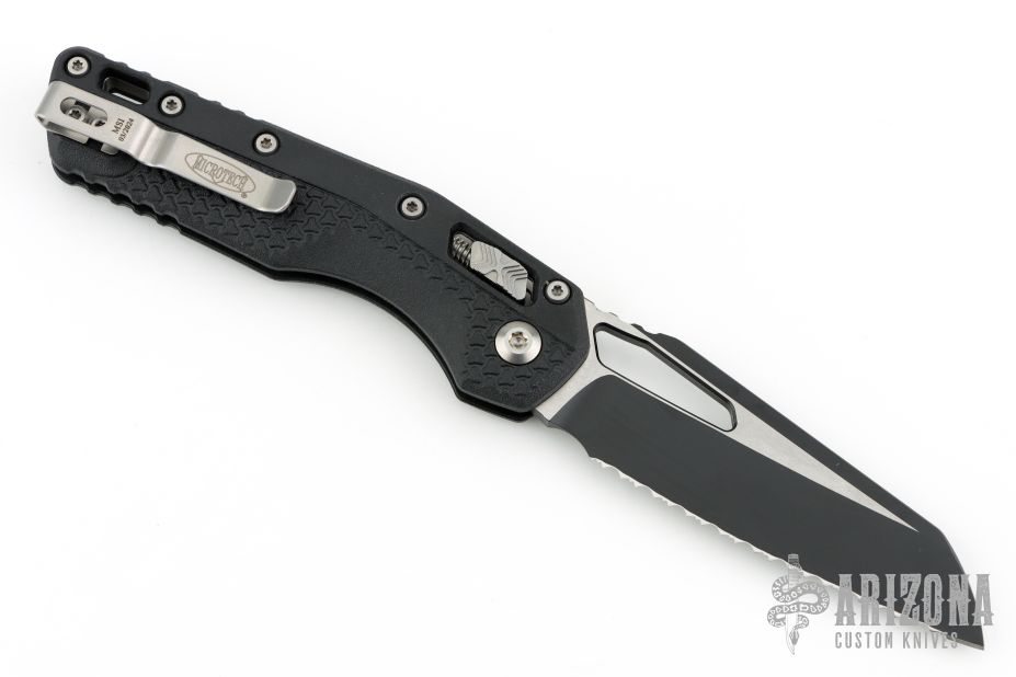 Released in 2023, the MSI (Microtech Standard Issue) is Microtech's first knife to feature its fantastic RAM-LOK technology. This tough take on the crossbar lock features Microtech's signature step pattern made famous by the actuation switches on the Ultratech series. The large blade cutout gives ample room for reverse middle finger flicks as well as standard slow-roll thumb opening with or without gloves. If neither of those is your preference, then simply pull down on the RAM-LOK and the blade flies open with a simple wrist flick. The injection molded handles are smooth and slightly tacky, providing great grip potential in both standard and reverse grips. Rugged, durable, extremely high-value, and made in the USA; we know that the MSI is going to quickly become a fan favorite among all members of the knife community.