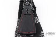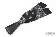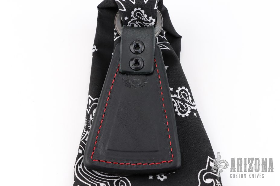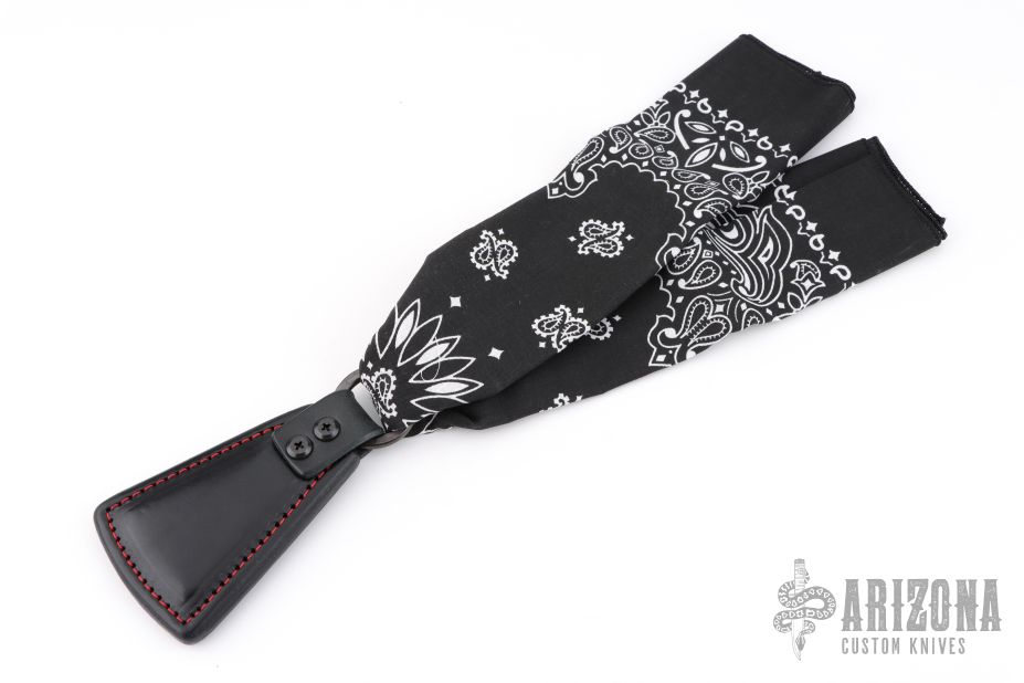 The Cowbell Sap is RMJ's take on the bandana sap. The Cowbell keeps your bandana or handkerchief handy, and sitting at the end of your bandana, is the perfect way to ring a bell! This Slugshot variation features black leather with contrasting red stitching and a bandana for some extra leverage. Constructed from cowhide with a lead core. Thick enough to lay on a wallop, and easy to carry. Monkey Edge Exclusive.