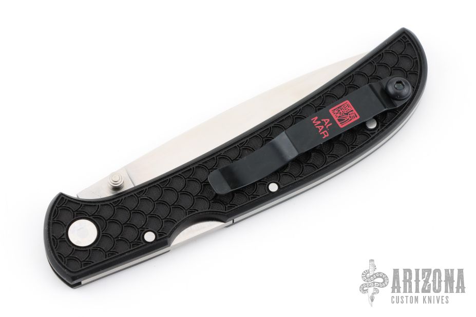 This Eagle Talon by Al Mar features a satin finished blade with a single thumbstud. The handle has black engraved micarta scales, stainless steel backspacer. Comes with original box. Excellent Condition.