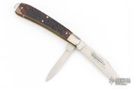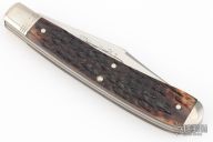 This Slipjoint from Camillus features two satin finished blades with nail nicks. The handle has nickel silver bolsters and jigged bone covers over brass liners and stainless steel springs. Has some light scratches, otherwise excellent condition.