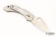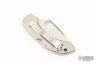 This Dragonfly Lock Back folder by Spyderco features a satin finished blade with thumbhole. The handle is stainless steel with colorful dragonfly and reed overlay. Excellent condition. Comes with original box and papers.