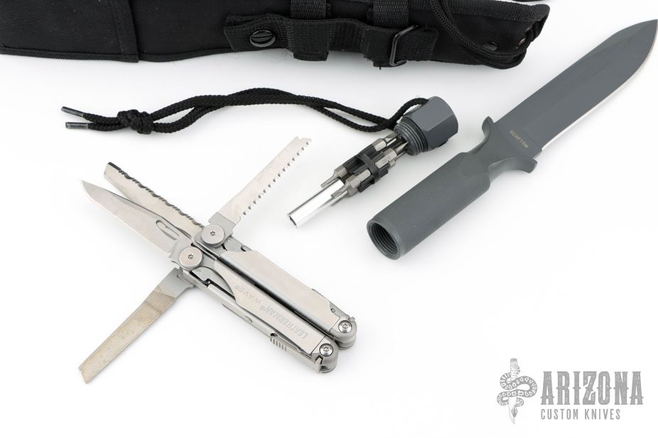 - Includes ballistic nylon sheath along with multiple tools inside handle (see image below)+