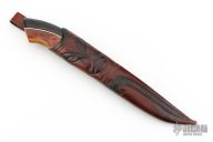 Roger Bergh is from Bygdea Sweden and specializes in Scandinavian style fixed blade knives with Damascus and natural handle materials. He started his knifemaking career working with leather in 1969. By 1973 he was making knife handles, and by 1995 after 15 years as a part-time knifemaker he started forging his own Damascus steel under the supervision and training of Conny Persson.