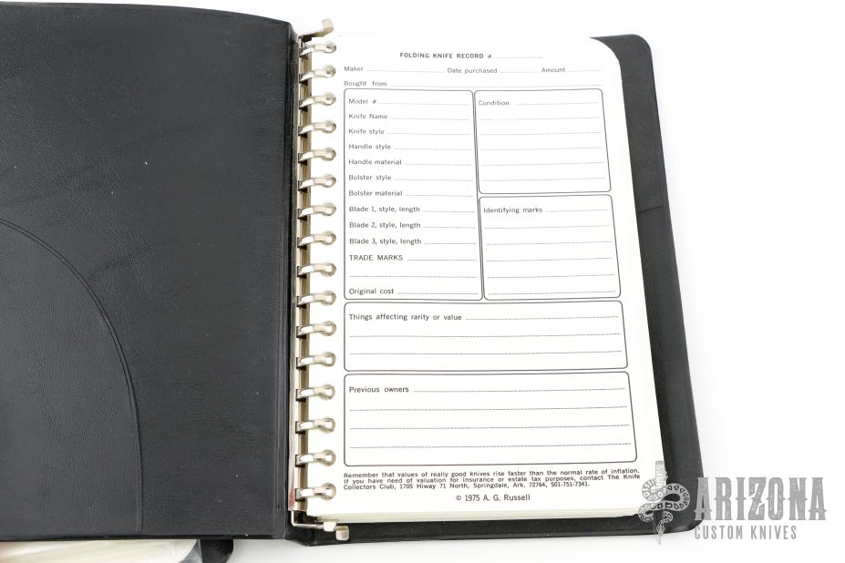 A.G. Russell Vintage Knife & Gun Collection Ledger/Insurance Log c. 1975